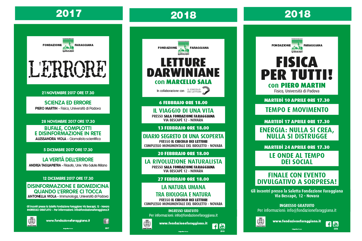 Centinaia di esperti in tutti i campi del sapere scientifico sono intervenuti alla Fondazione Faraggiana per spiegare tematiche anche complesse con un linguaggio divulgativo accessibile ai meno esperti per diffondere nel migliore dei modi la loro conoscenza